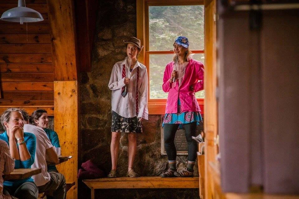 My nature talk on waste management in the alpine zone at Mizpah Spring Hut. I’m in the front with the apron.