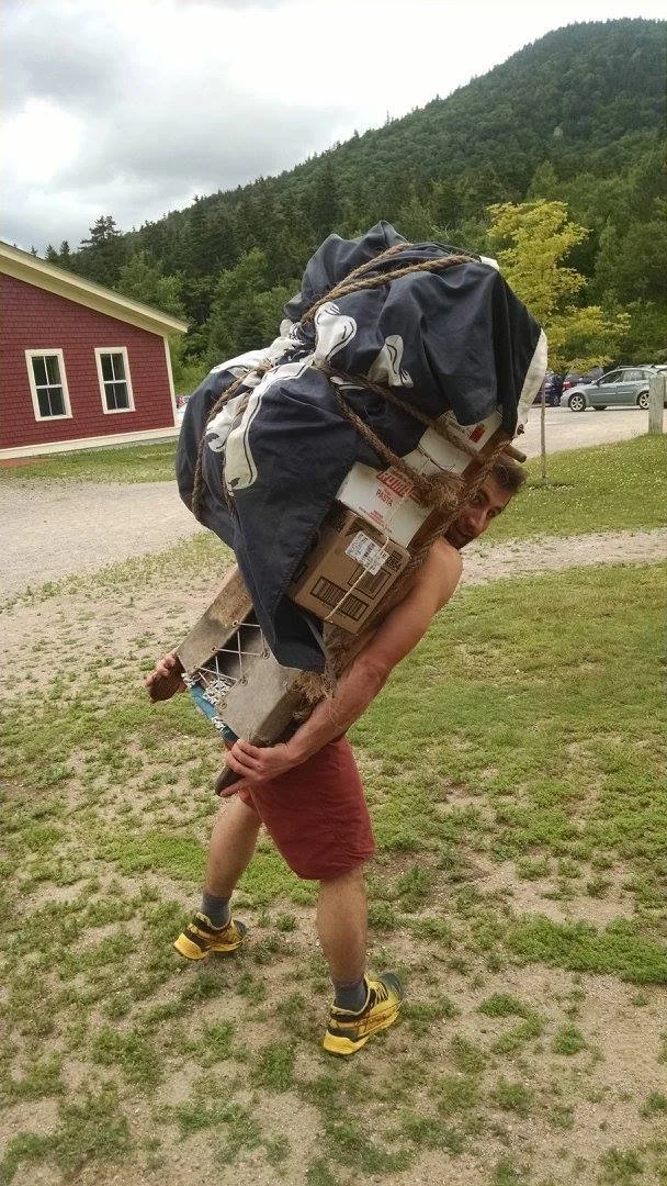 Hut croo pack in guest food and pack out trash every couple of days. We use wooden and canvas packs (”pack boards”) to load 45+ pounds of food. Depending on the hut, the hike into the hut can be 4+ miles with 3k feet of elevation gain. Summers in the huts were the fittest I’ve ever been.